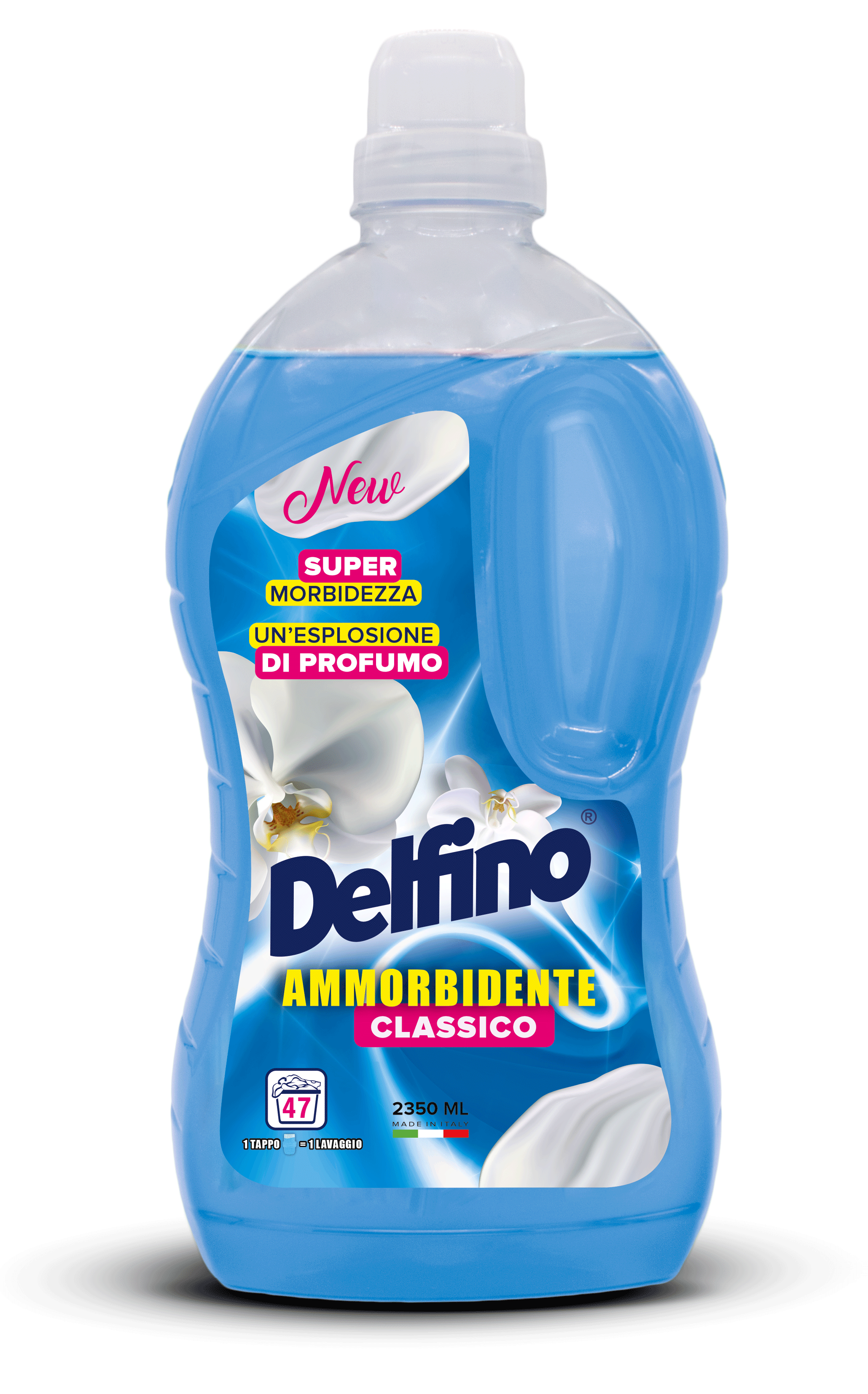 Wybierz Delfino Classico, by Twoje pranie było zawsze miękkie, świeże i pełne klasycznej elegancji. Idealny do każdego rodzaju odzieży, od codziennych tkanin po delikatne materiały.