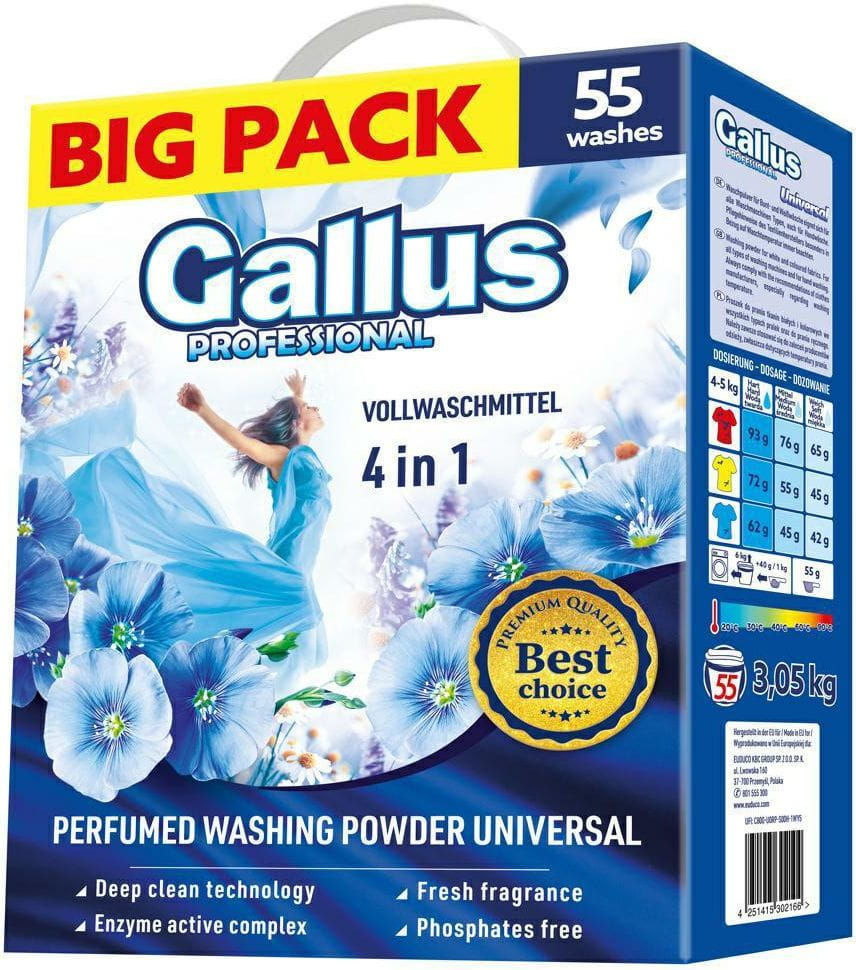 Gallus Professional Universal 3,05 kg – uniwersalny proszek do prania, 55 prań, skuteczne usuwanie plam.