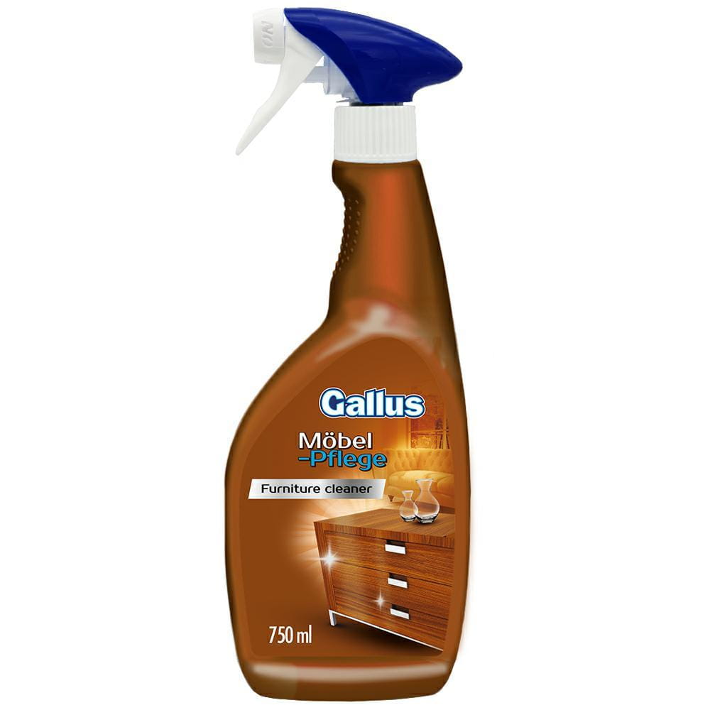 Gallus Spray do mebli 750 ml to gotowy do użycia preparat do czyszczenia i pielęgnacji mebli oraz drewnianych powierzchni. Zawiera wosk, który delikatnie nabłyszcza meble, a także składniki antystatyczne, które pomagają usuwać kurz i zapobiegają jego ponownemu osiadaniu. Produkt nie pozostawia smug, przywraca naturalny blask powierzchni i odświeża ich wygląd.