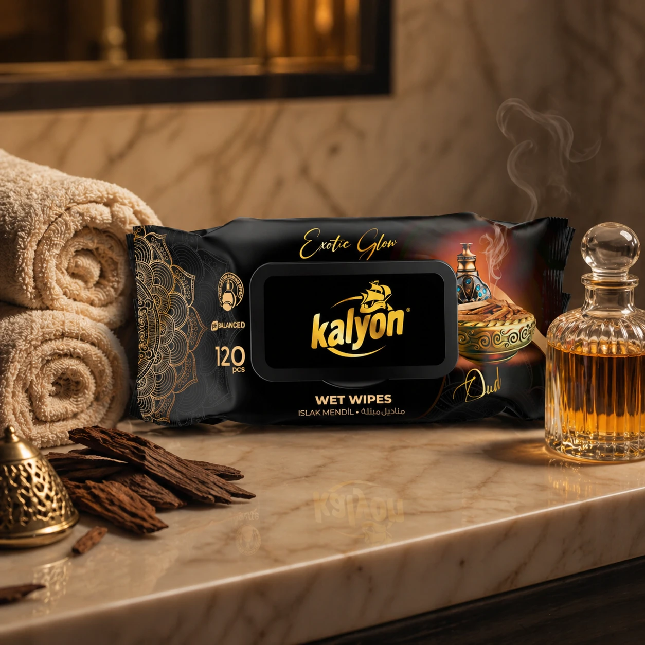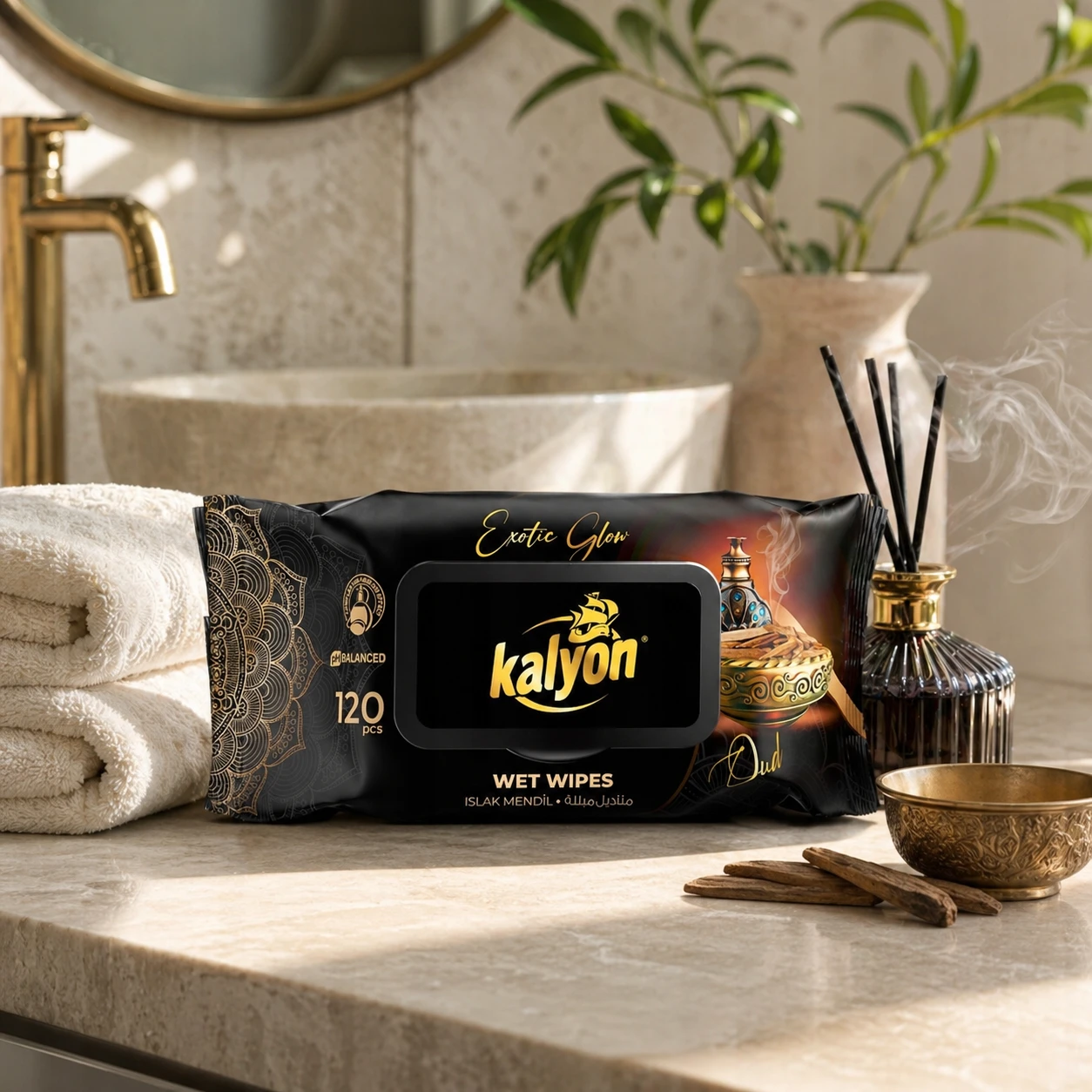 Kalyon Chusteczki nawilżane perfumowane 120 szt. (Exotic Glow) to chusteczki z kolekcji Luxury, stworzone z myślą o maksymalnej miękkości i komforcie podczas codziennego użytkowania. Gęsta, miękka struktura zapewnia delikatne, a jednocześnie skuteczne oczyszczanie, a perfumowany wariant Exotic Glow pozostawia przyjemny, długotrwały efekt zapachowy.