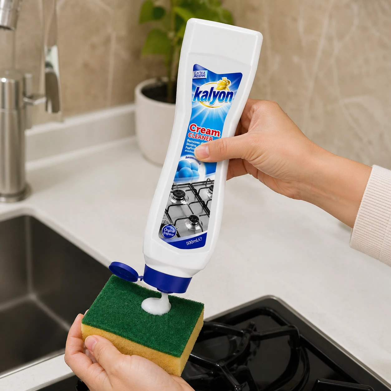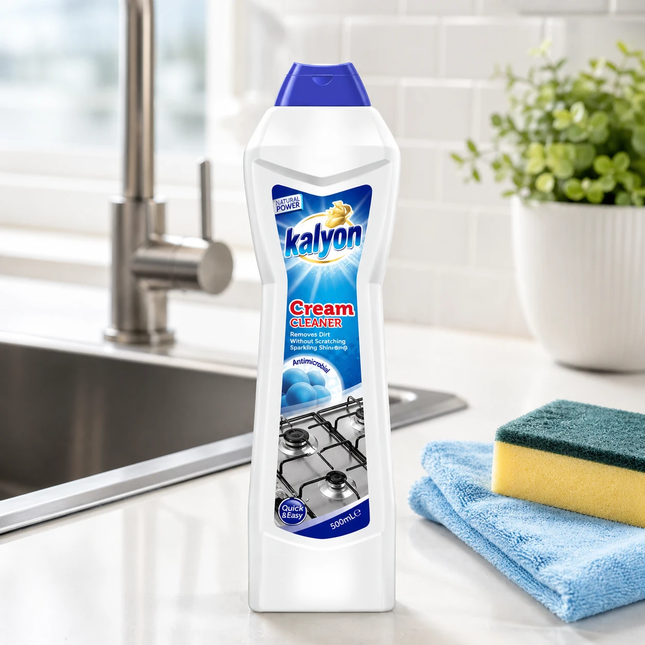 Kalyon Mleczko do czyszczenia 500 ml (Ammonia) to uniwersalny preparat do dokładnego czyszczenia wielu powierzchni w kuchni i łazience. Dzięki formule typu „Micro Crystal” mleczko pomaga usuwać uporczywe zabrudzenia, osady oraz zmatowienia, a przy tym wspiera uzyskanie efektu czystości i połysku bez smug. Sprawdza się m.in. na umywalkach, wannach, płytkach ceramicznych, płytach kuchennych czy muszlach toaletowych.