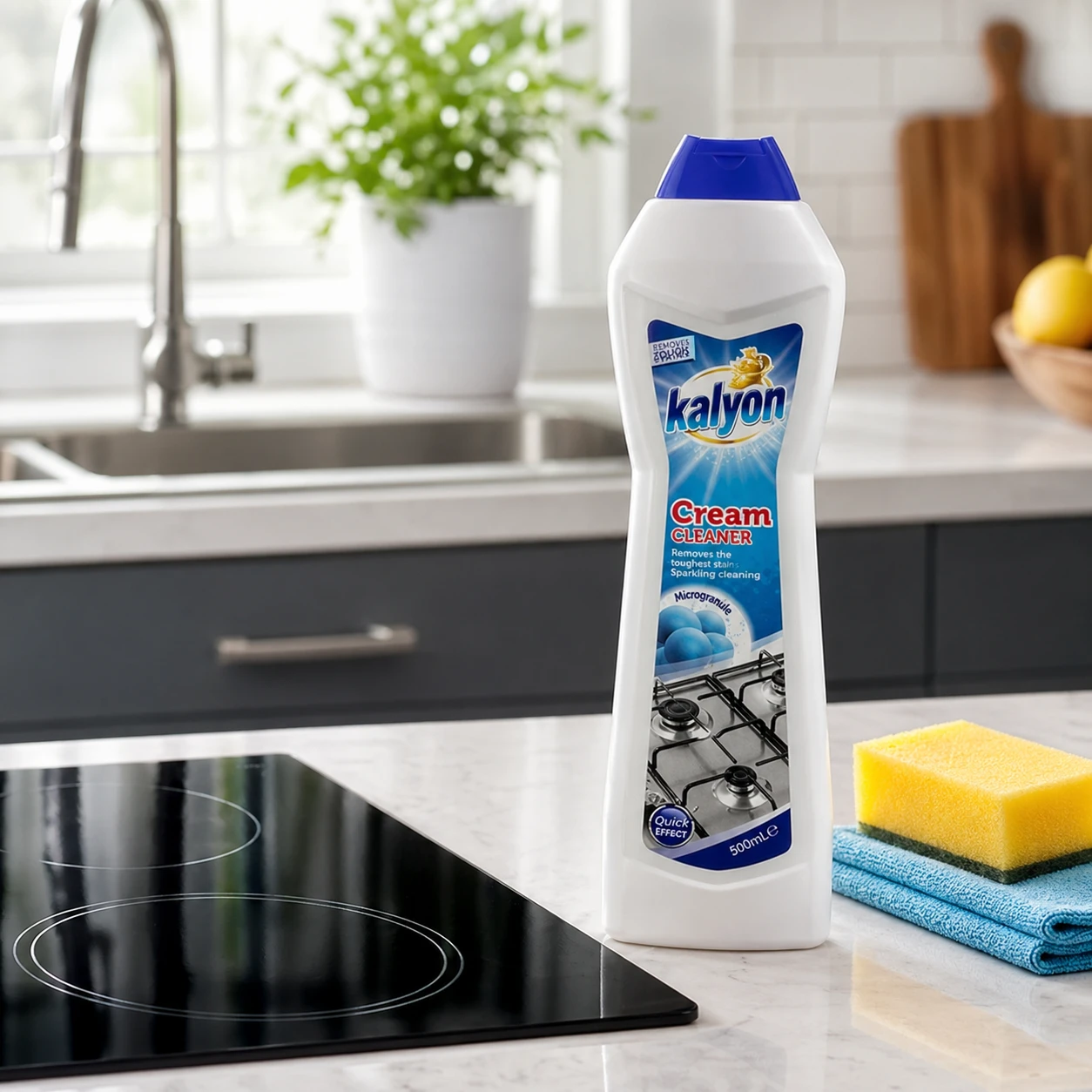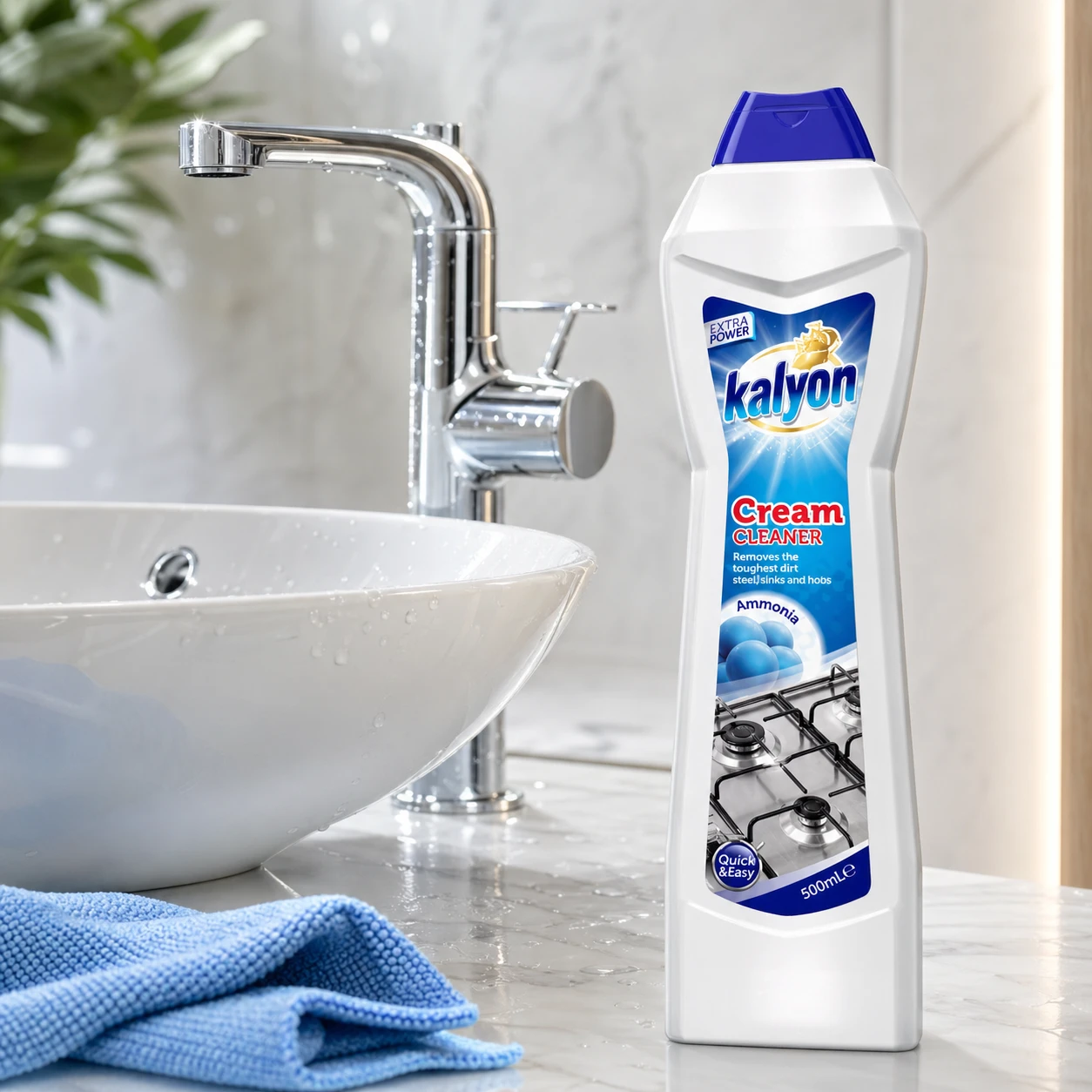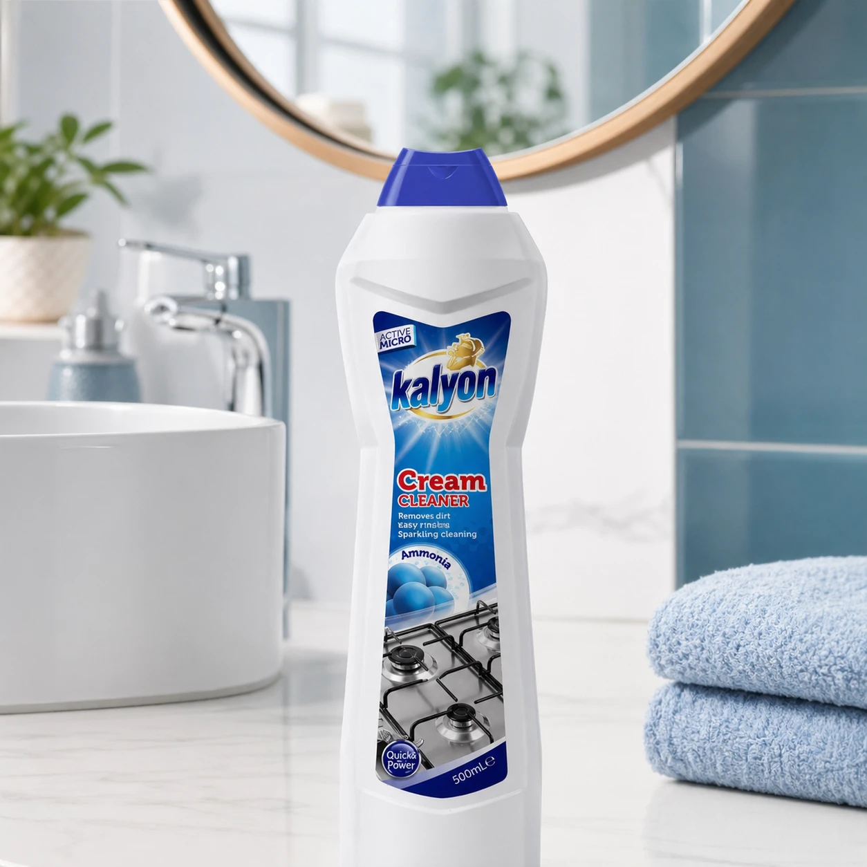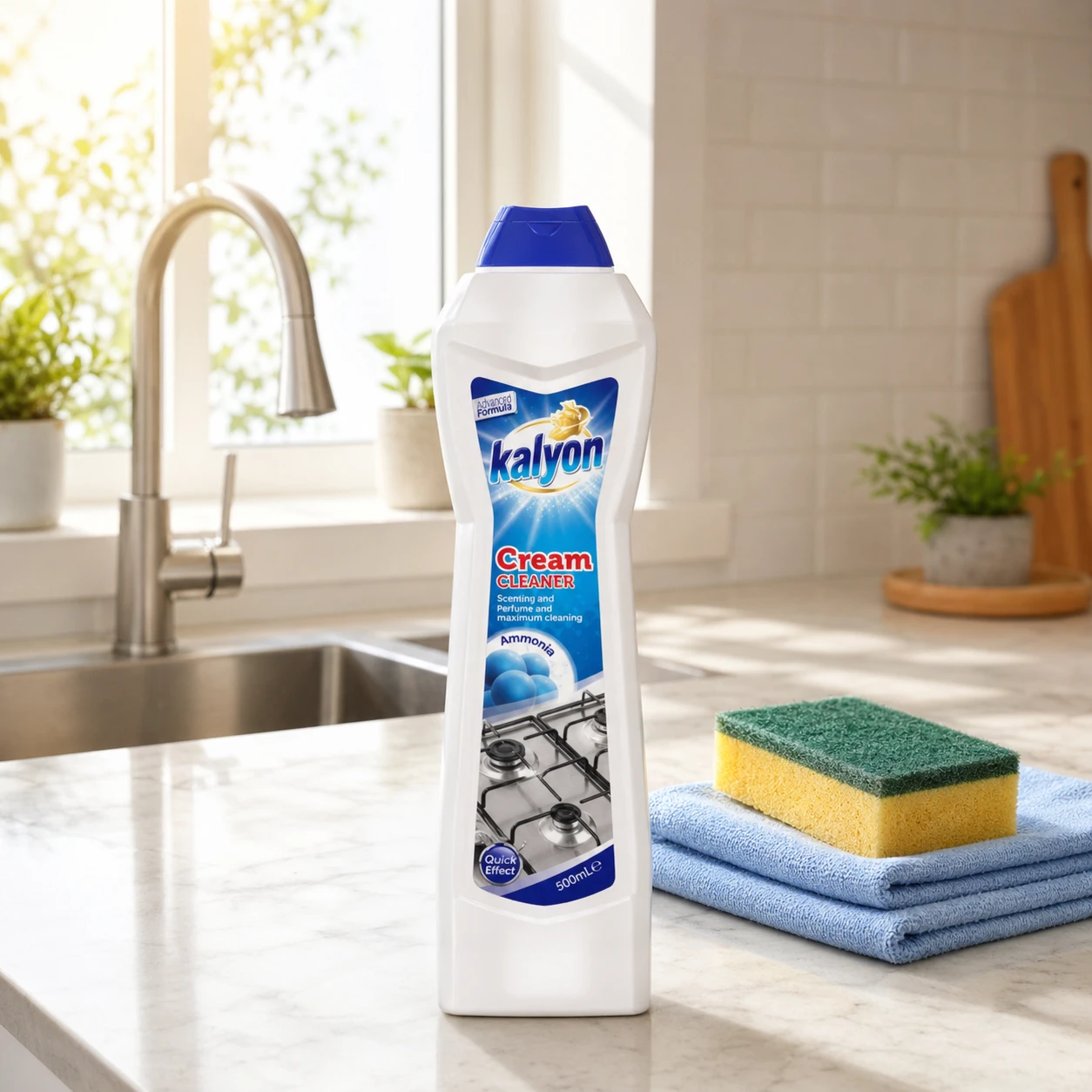 Kalyon mleczko do czyszczenia 500 ml Ammonia to uniwersalny preparat do kuchni i łazienki. Pomaga usuwać osady i zabrudzenia, wspiera efekt połysku bez smug oraz neutralizuje nieprzyjemne zapachy.