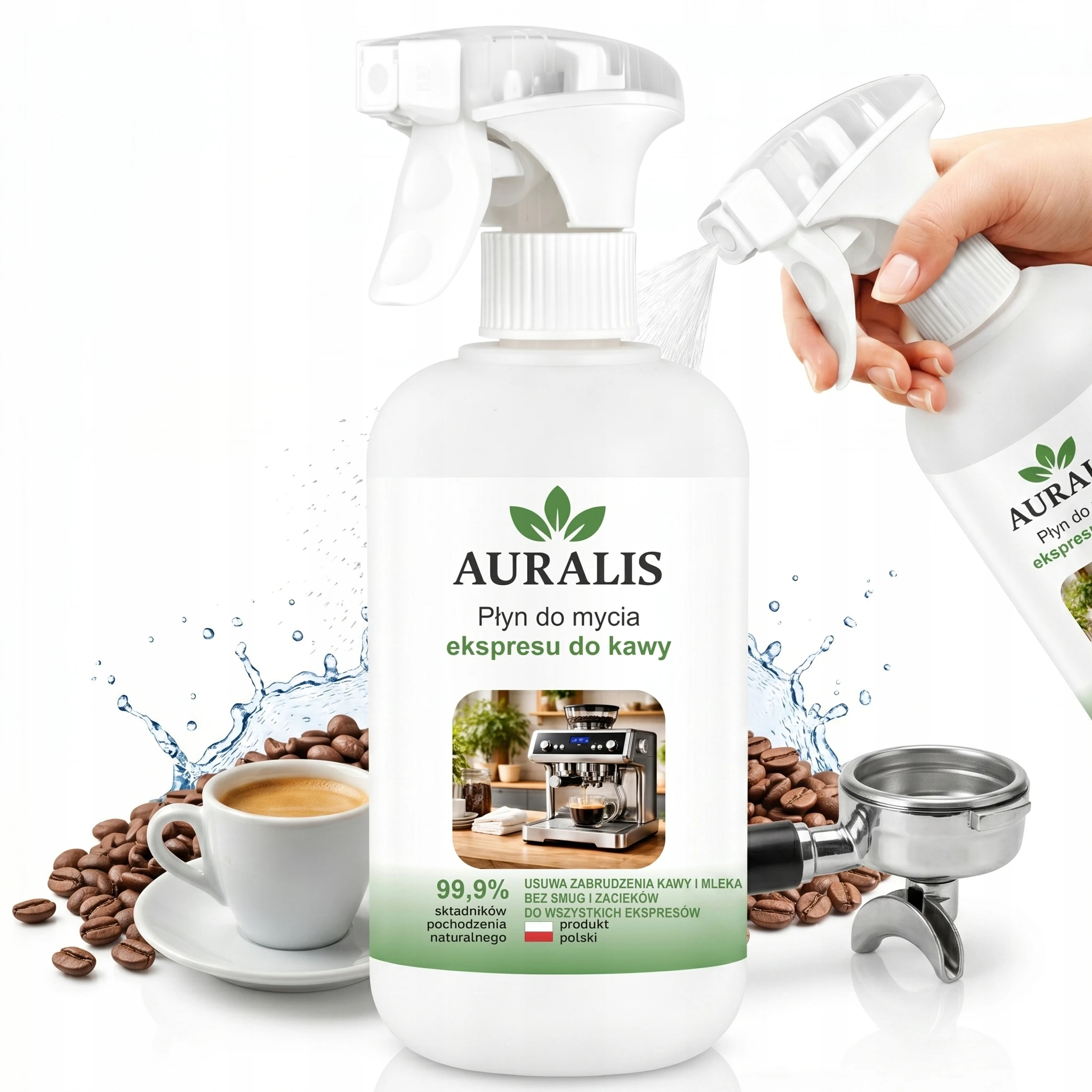 Płyn do mycia ekspresu do kawy Auralis 500ml – Naturalna Formuła ze Spryskiwaczem