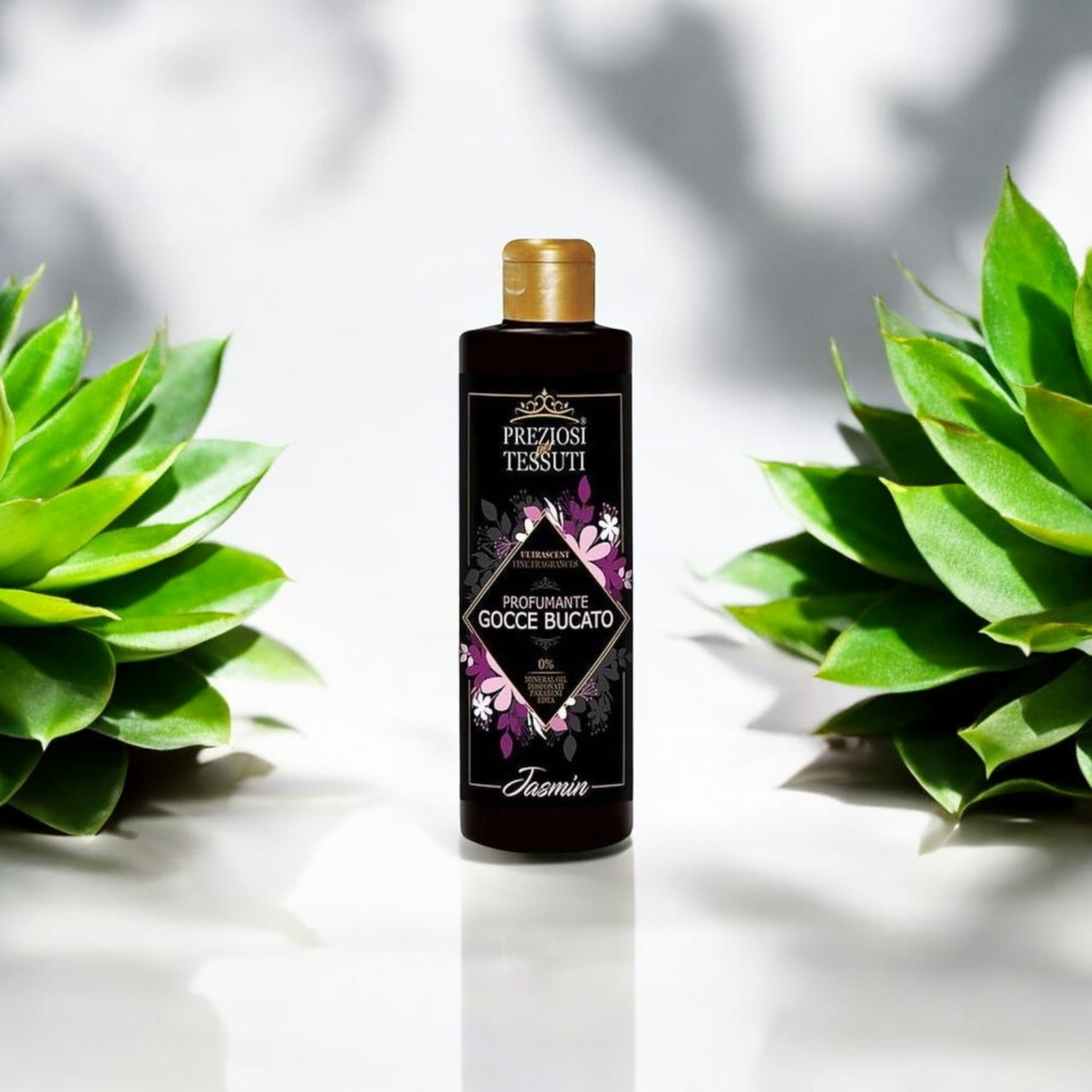 Preziosi Tessuti Perfumy do Prania - Jasmin to idealne rozwiązanie dla tych, którzy pragną, by ich pranie nie tylko było czyste, ale także wypełnione przyjemnym, luksusowym zapachem, przywołującym delikatność kwiatów jaśminu.