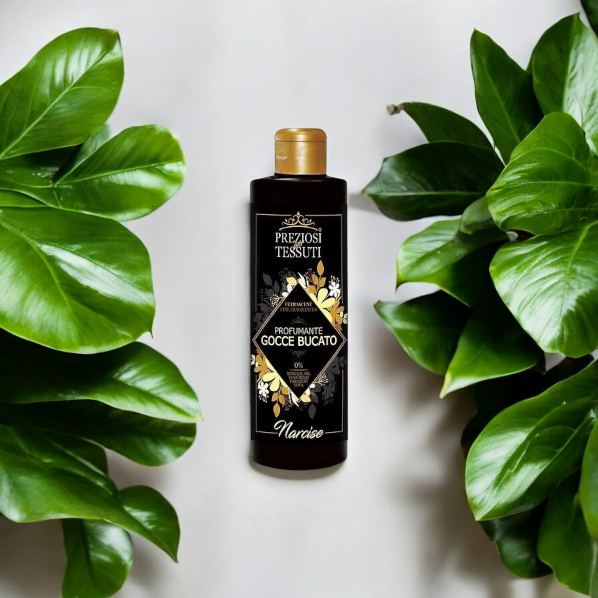 Zanurz się w wodospadzie intensywnego i długotrwałego aromatu z Preziosi Tessuti Perfumami do Prania o zapachu Kwiatu Narcyza. Te luksusowe, skoncentrowane perfumy do prania nie tylko nadają Twoim ubraniom wyjątkowo świeży i elegancki zapach, ale także chronią tkaniny, zapewniając im trwałą świeżość.