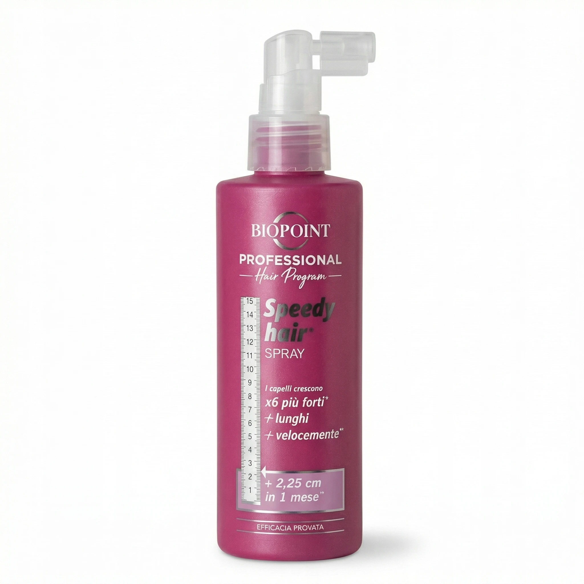 Spektakularny przyrost: Formuła pozwala na osiągnięcie niesamowitych rezultatów, gwarantując widocznie szybszy wzrost włosów – nawet o + 2,25 cm w ciągu zaledwie 1 miesiąca (+ 2,25 cm in 1 mese).