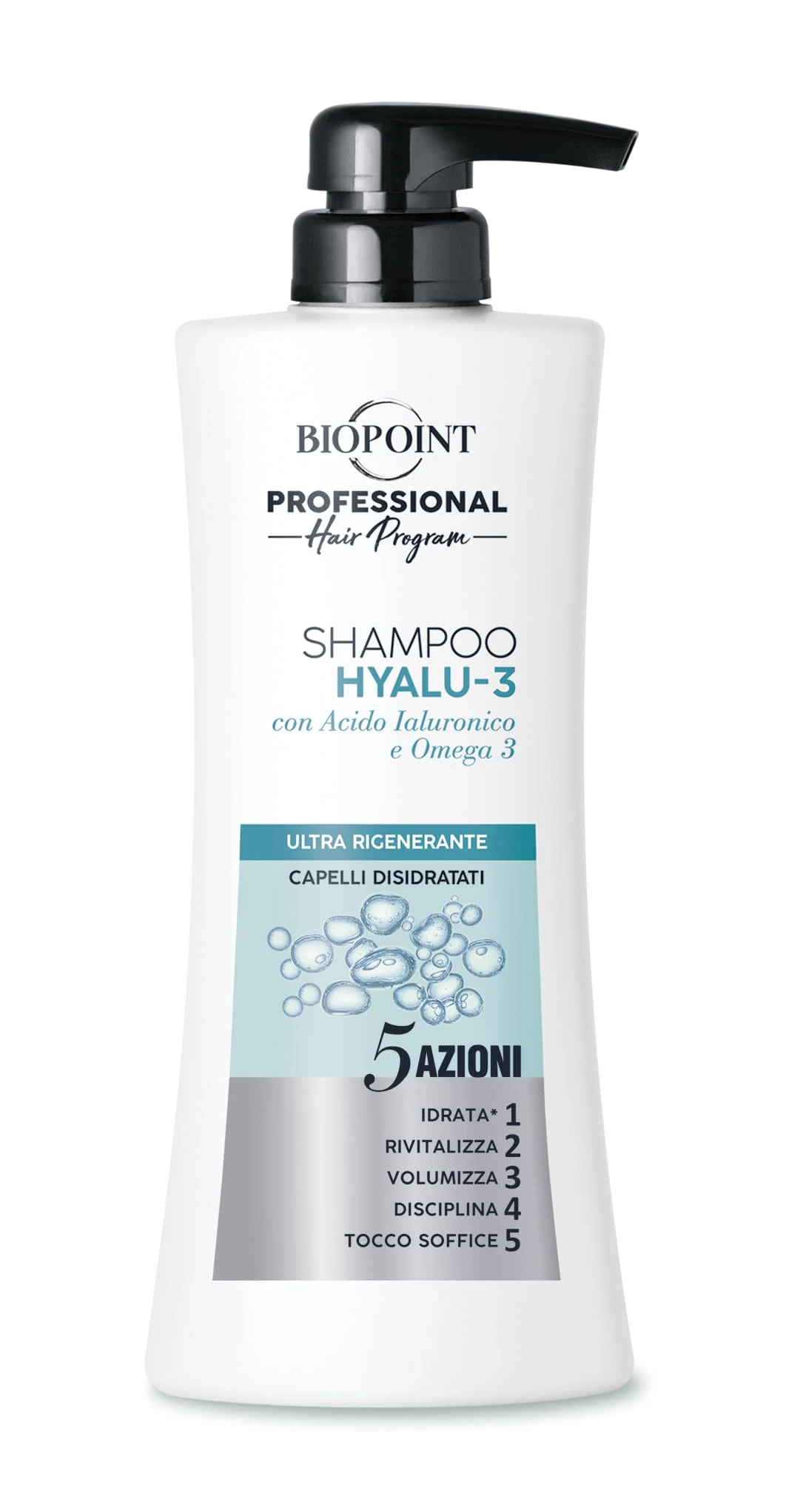 Szampon nawilżający do włosów Biopoint Hyalu-3 z kwasem hialuronowym i kwasami Omega 3
