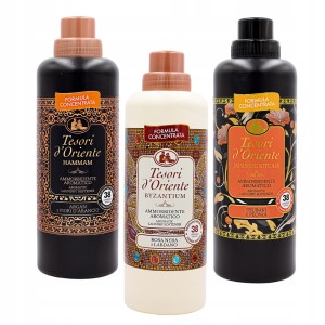 Zmień swoje codzienne pranie w niezwykłe, aromatyczne doświadczenie dzięki zestawowi trzech luksusowych płynów do płukania od włoskiej marki Tesori d'Oriente. Wyselekcjonowane kompozycje zapachowe inspirowane starożytnymi rytuałami piękna otulą Twoje tkaniny długotrwałym, perfumeryjnym zapachem i nadadzą im wyjątkową miękkość.