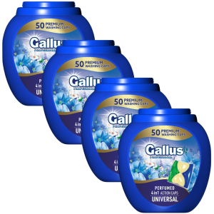 Zestaw 4× Gallus Universal – 200 kapsułek do prania białych i jasnych tkanin. Skuteczność 3w1, świeżość i wygoda.